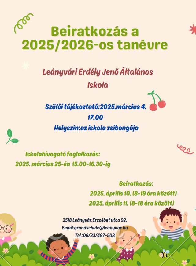 Beiratkozás 2025/2026Tájékoztató nemzetiségi oktatásról Beiratkozási körzetek Tankerületi közlemény További felvételi lehetőségről szóló tájékoztató Tájékoztató beiratkozás elektronikus ügyintézéséről a KRÉTÁ-ban